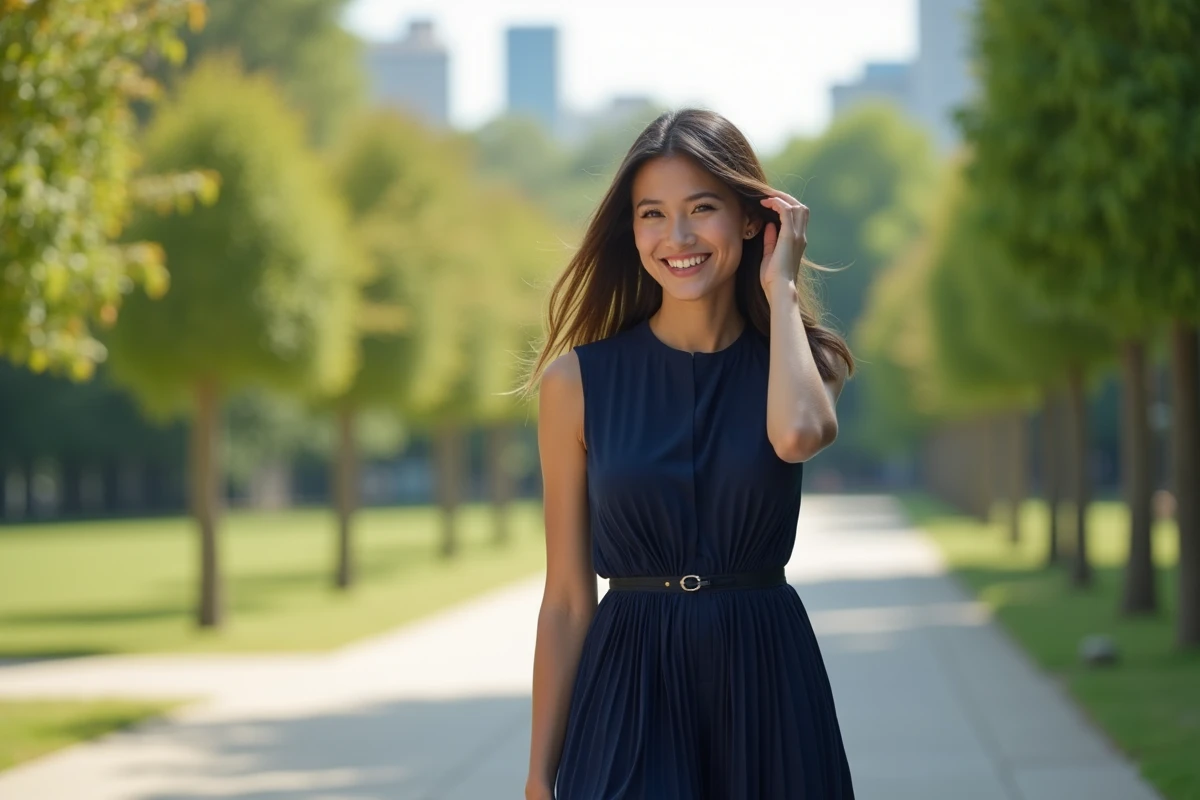 Robe bleue en soie décontractée